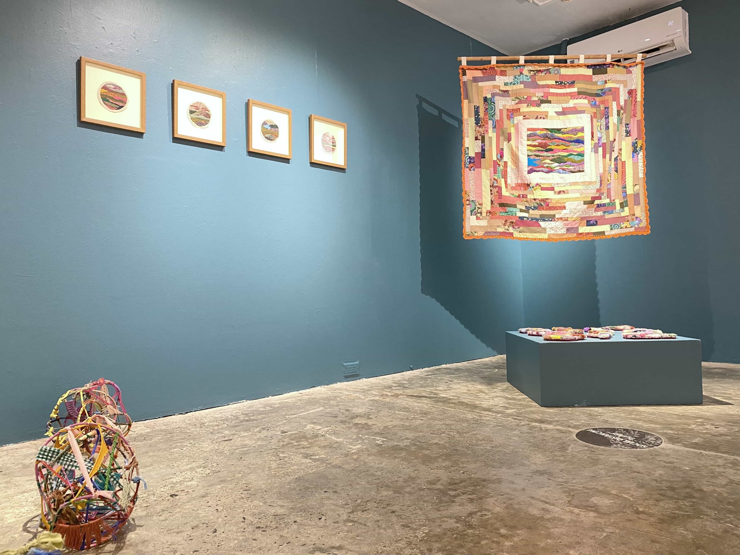 Finding beauty in nature is further explored in her works Sick Man in Jinguashi and romanticisation of an hour-long motorcycle ride (are we there yet?) These embroidered landscapes appear in a window-like vantage where the mind is able to wander. It affords its viewer an opportunity to dwell on the idea of a place that we can only marvel at, without a promise of actually being there.