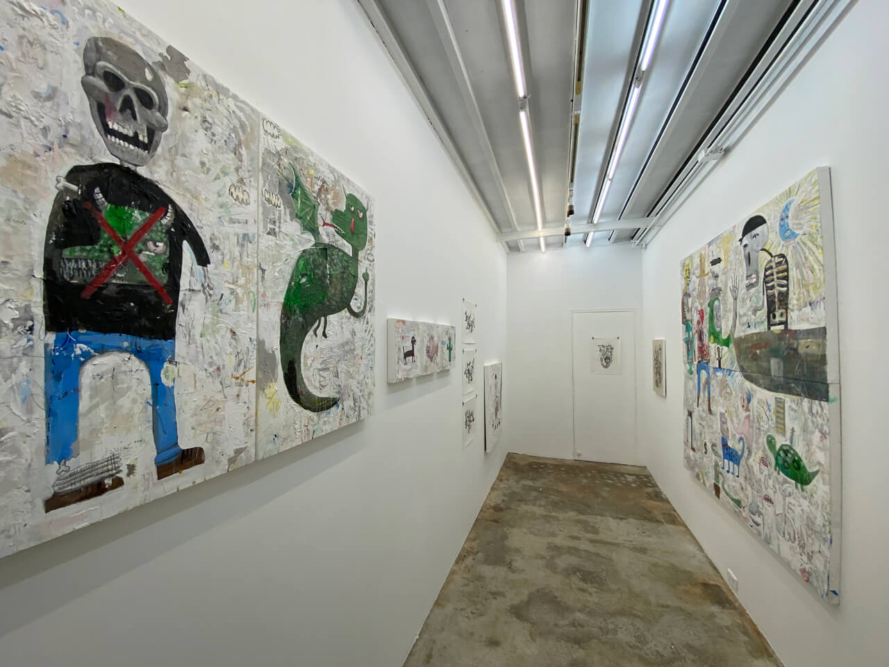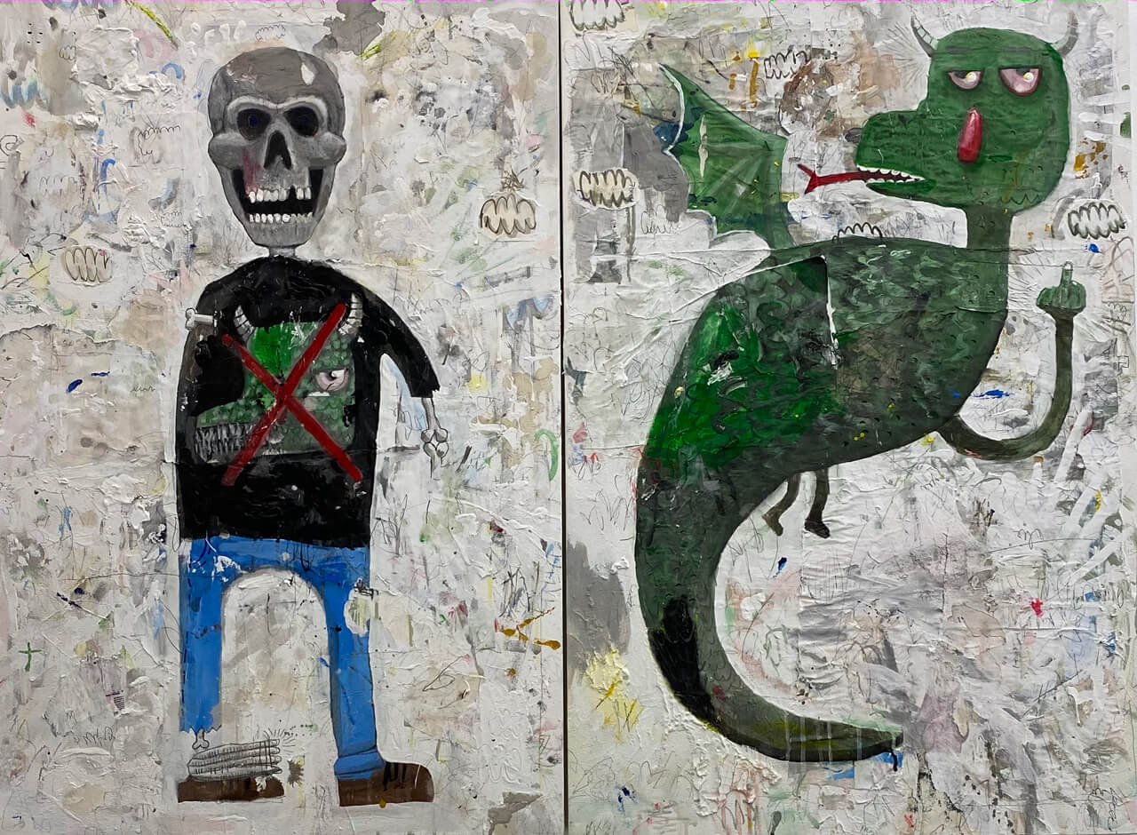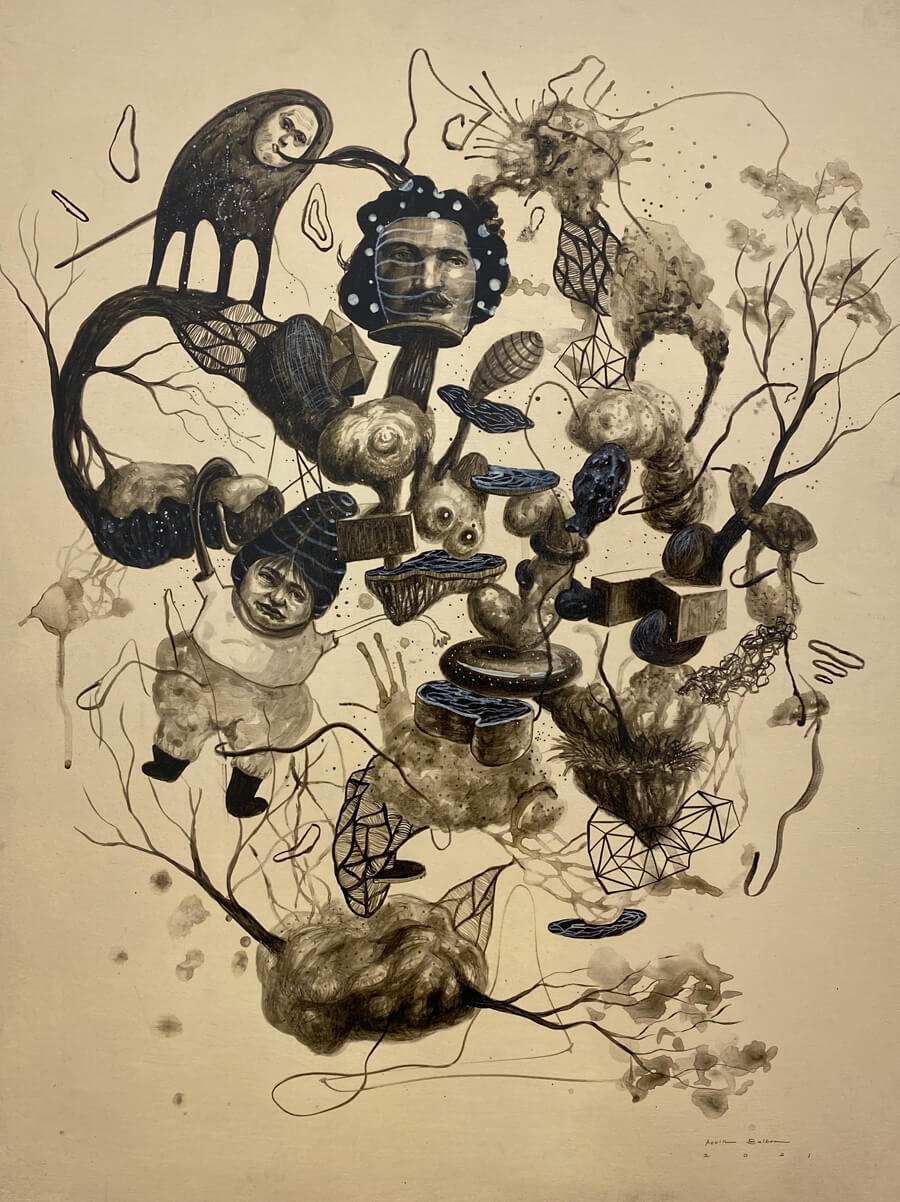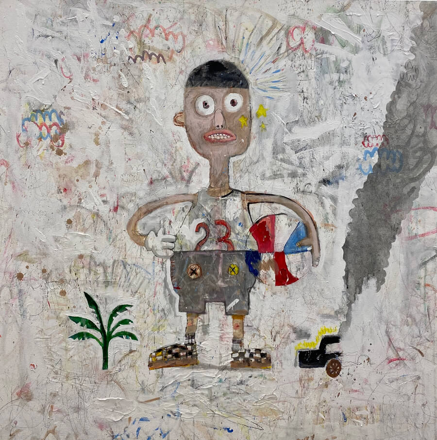 Paolo Torres’ works embodies the process of construction, deconstruction and reconstruction portrayed through layered surfaces that produce textured images. Each layer is blanketed with tinges of white surfaces in between his heavily colored characters that created a surface tarnished by a veil of smoke. The familiar expression on his characters sort of converse with the viewers, an invitation to ask themselves “Do we feel the same way?”