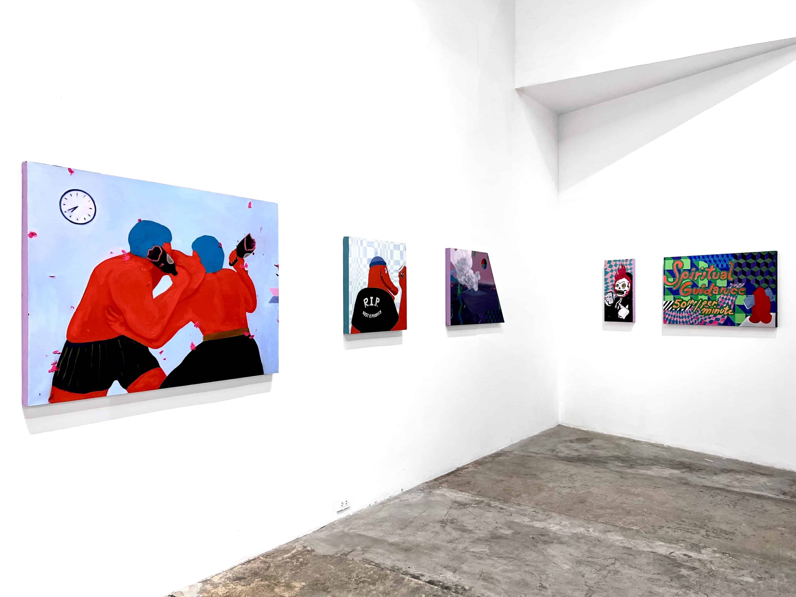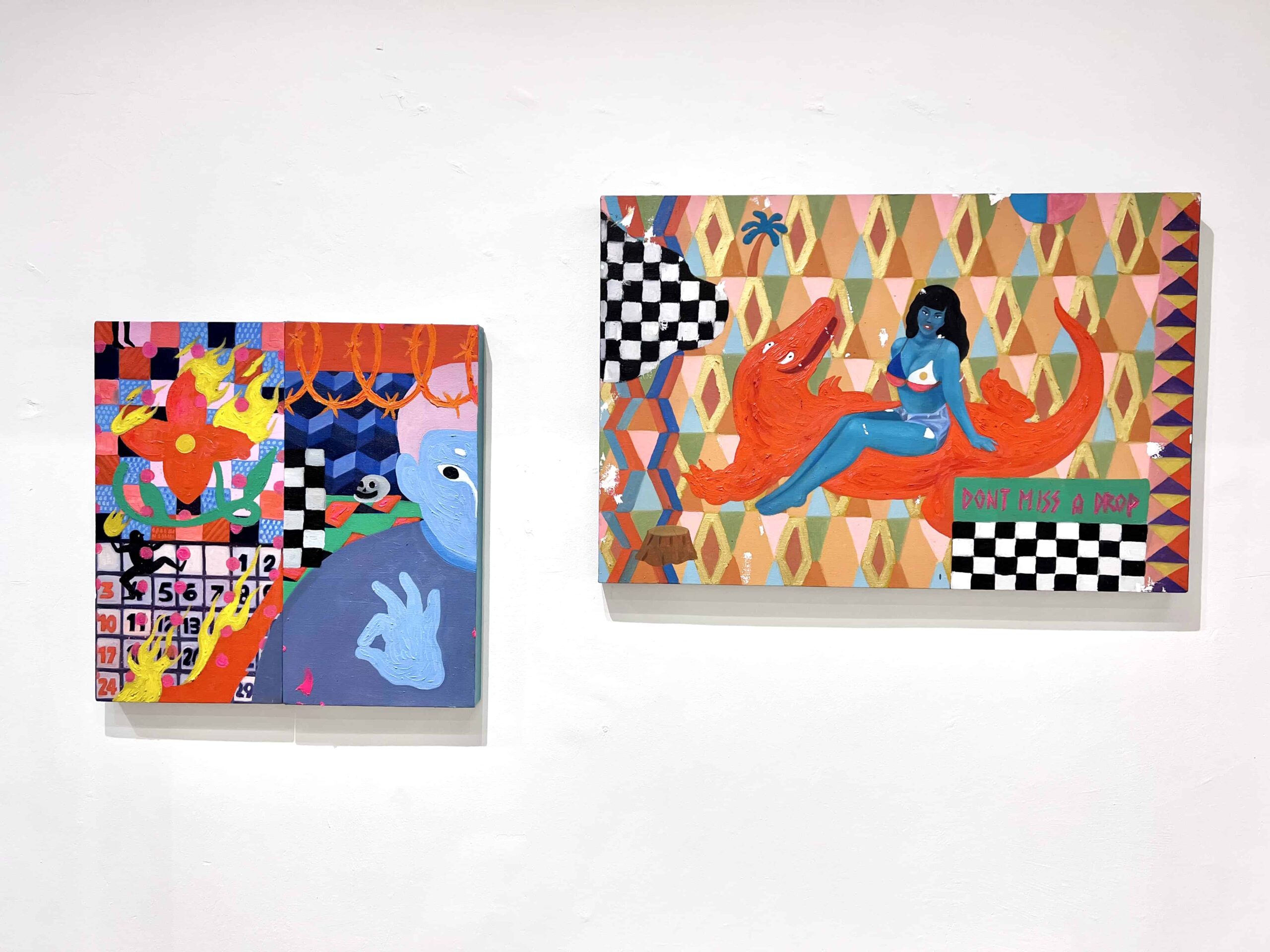 By the exhibit’s culmination, the series of paintings then become only one component of a larger experiential work. The gallery space then transforms into a site of interactivity for different channels of enjoyment to create a fuller celebratory experience. Bitto highlights and then assigns meaning to these various activities just like one jots field notes on an anthropologic undertaking: a mini market as a site of material consumption, a DJ set that induces an exhilarating trance, tattooing as commemoration and embodying leaving a mark, tarot reading as a desperate glimpse into an obscure future. In anticipation of the final form of Happy Ending, “A lot of your problems are your own damn fault”, “White Castle” and “A Light of Hope” also double as teaser images to its completion as a participatory art installation.