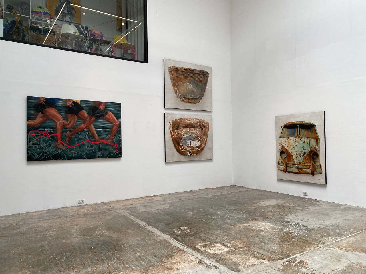 This love for the open road is what unites Dela Cruz and Dial in the exhibition, Never Leave Behind. Recently, they have been exploring themes of mobility in their respective individual shows. Now together in one space, their works create a complementary vision of what this road signifies—from its promise of nostalgic abandon to its force of destabilizing inertia.