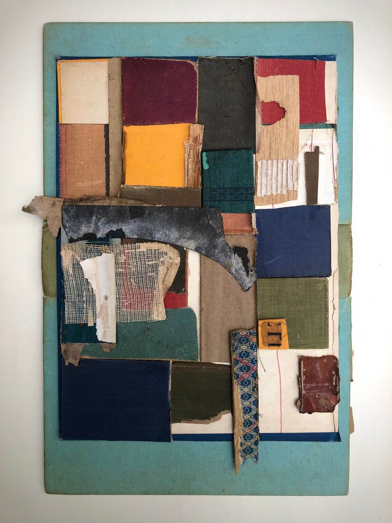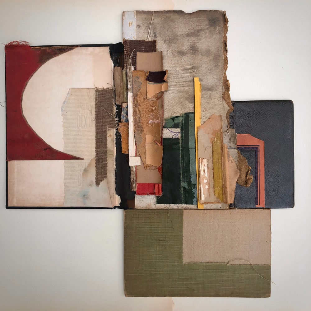 Through deconstruction and reconstruction, she pieces together old book parts