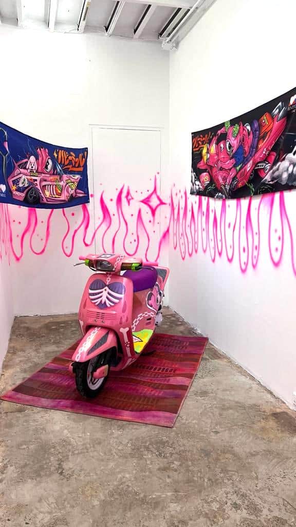 Pandemic also contributed for the fruition of the show, it became the catalyst that helped him mend his relationship with his father, a reconnection that gave way to revisit moments filled with parking lots and wheels, a push the artist needed to start learning more about cars and scooters.