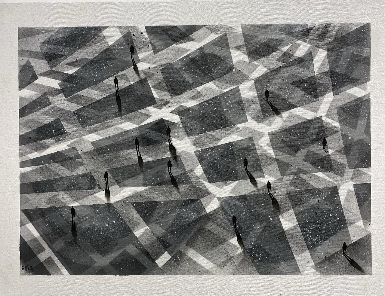 BATO’s Multi layered dimensions portrays his identities. Overlapping images and chaotic patterns