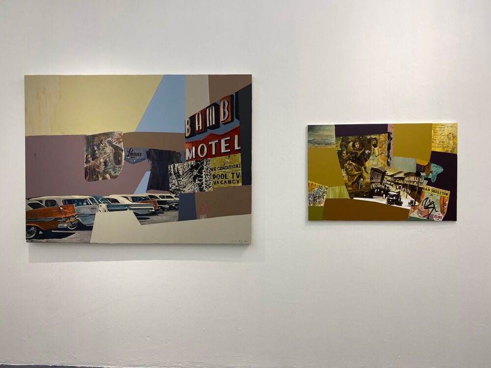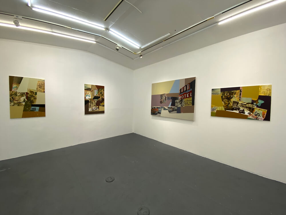 In Jucar Raquepo’s Reversed Futurism (Or the Map Precedes the Territory), the artist’s paintings somehow create a delectably warped vision board replete with disjointed images and skillful renderings of old street photographs, circus freakshow flyers, 50s ads and images of icons of realities spliced together. Set in collage-like arrangements, Raquepo’s fragmented renderings bring to mind Jean Baudrillard’s The Precession of Simulacra and concrete illustrations of simulation. What might be surprising at a closer look, however, is that the appearance of a collage does not, in reality, offer what we expect: we see not decoupaged layers and cutouts, but mimetic paintings straight from the artist’s brush.