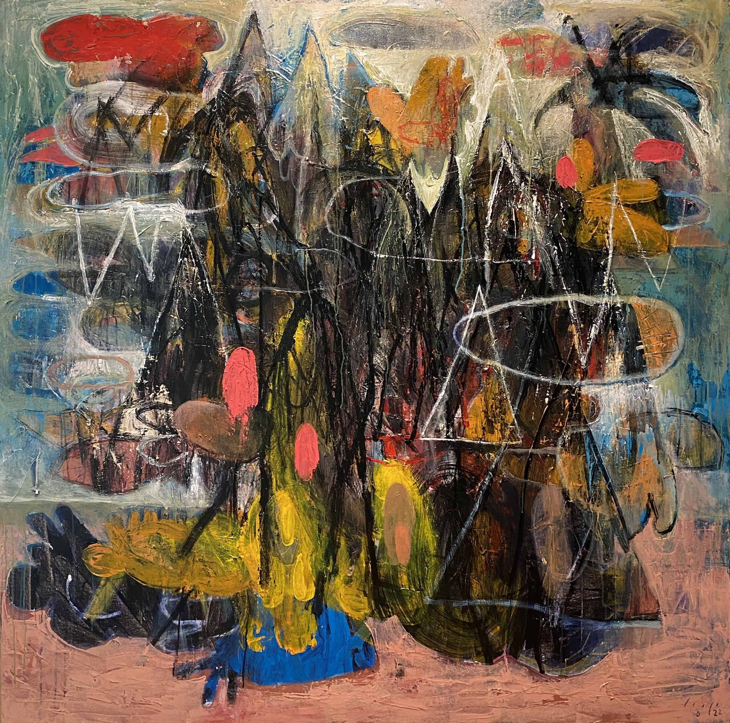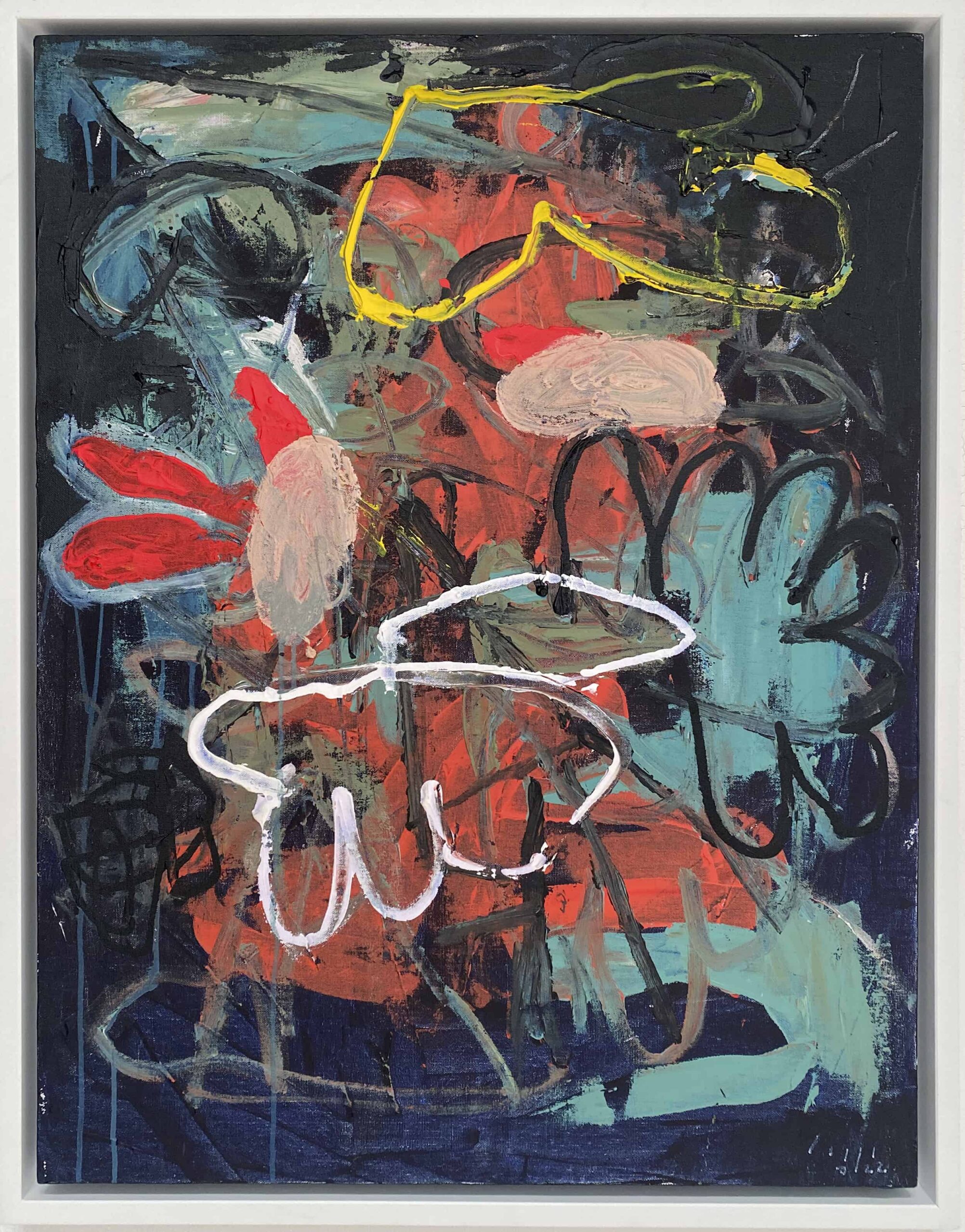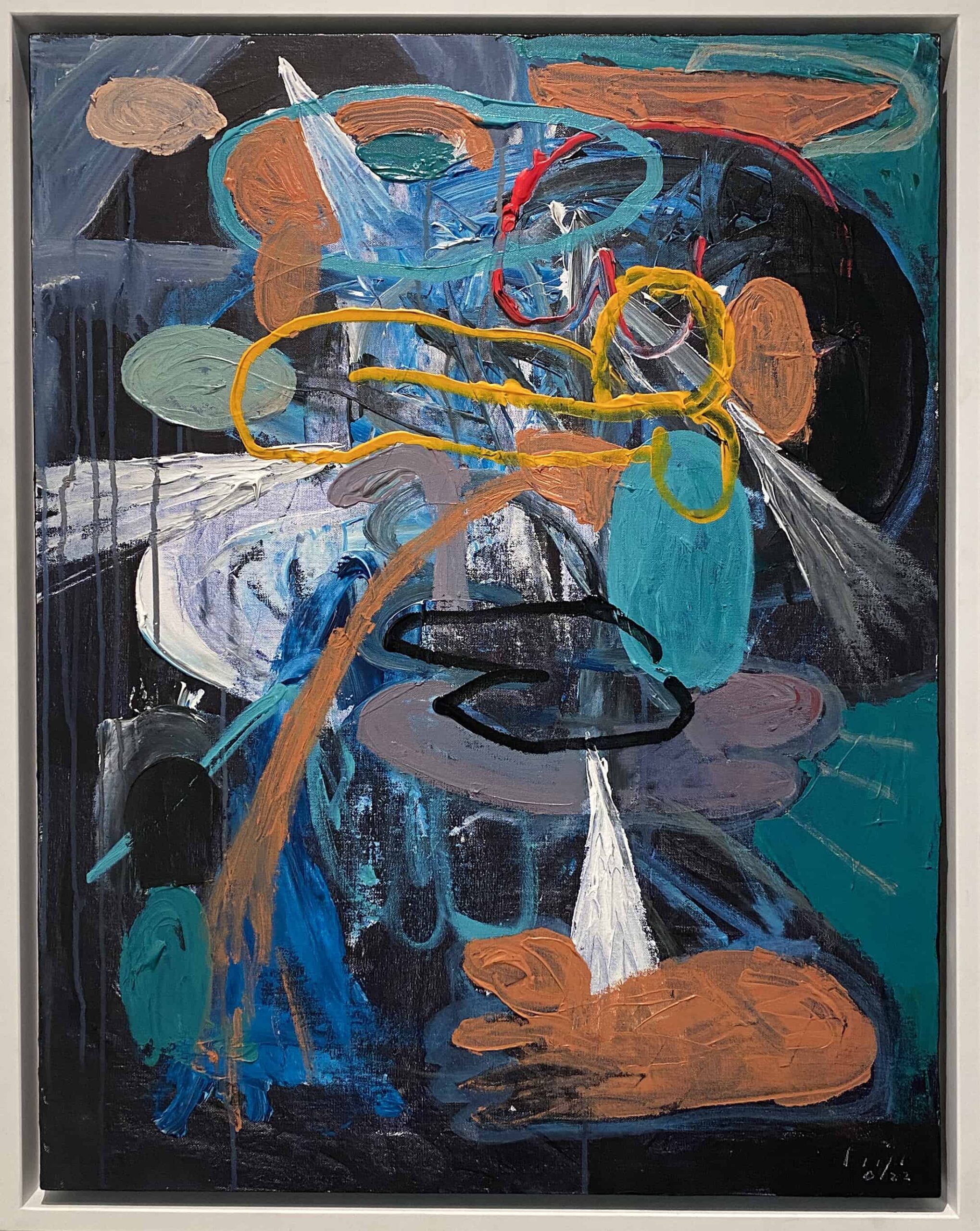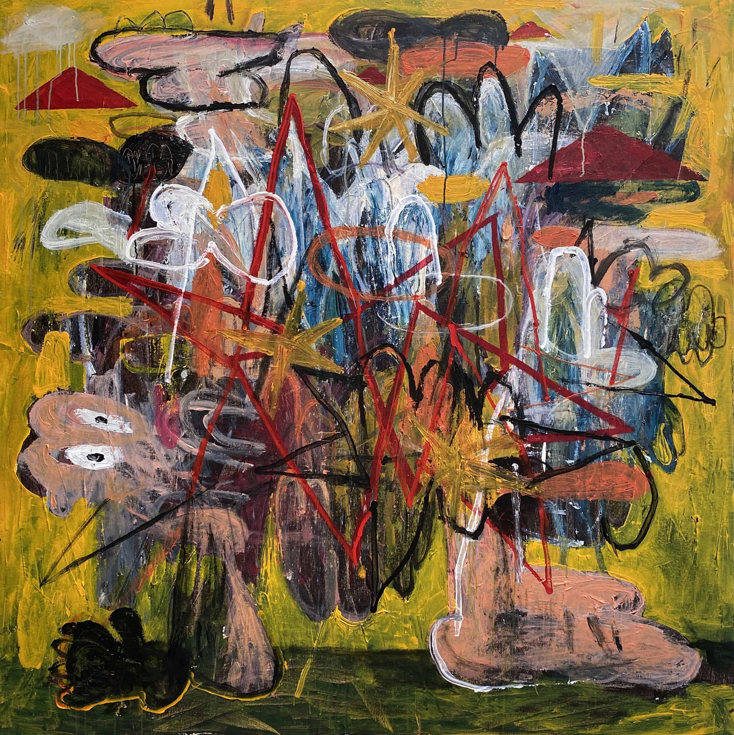 Other familiar anatomy includes extremities like hands, buttocks and genitals that can be found all across his paintings. He refers to his figures as violent and perverted representations of our modern cultural byproducts such as self-doubt, paranoia, depression, anxiety and disease. The figures in his paintings seem to carry an invisible weight, burdened by the meaninglessness and limitations of their existence. He tackles issues of existentialism and even nihilism as a recurring theme throughout his art and along with it, the metaphysical and sometimes spiritual aspects of being, in contrast to our transient biology.