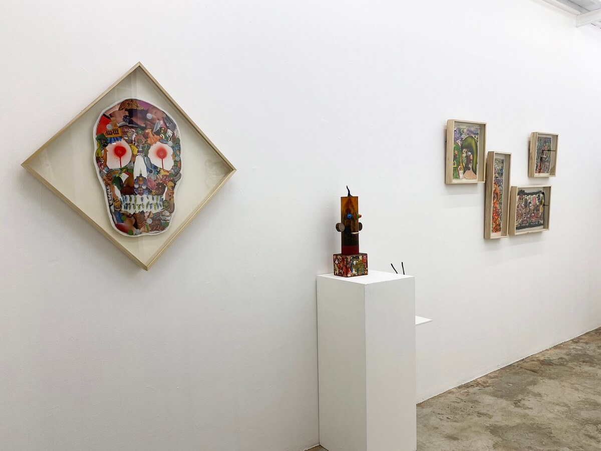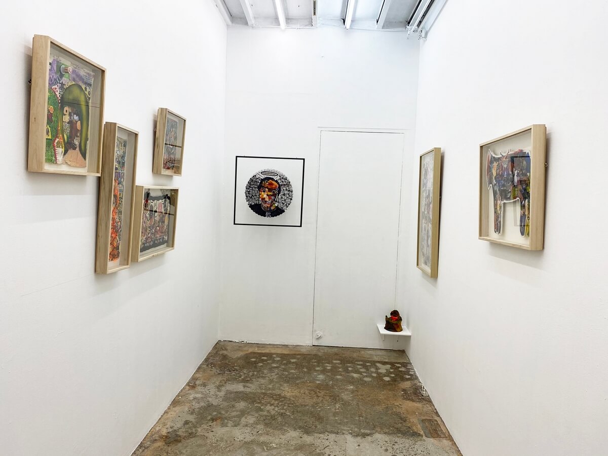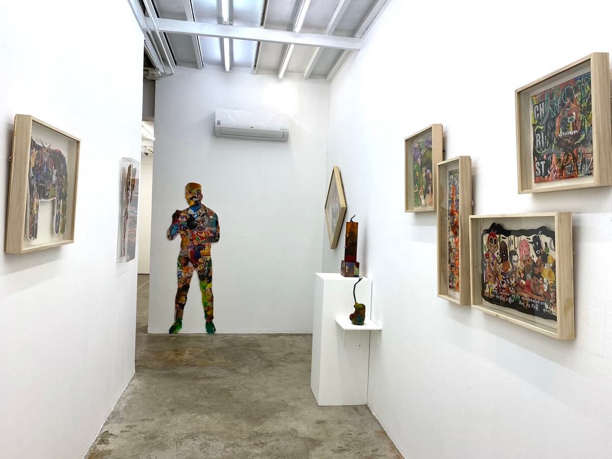 Magazines, exhibit invitations, brochures, manuals, posters, packaging box, standee, t-shirts, tetra pak, plastic packaging, books, comics, tissue, plate, candle, trophy, cake stand, calling cards, dried paints, epoxy, etc. It’ s not literally what the title says to it. Techniques & style differentiate its eagerness to speak in its visual elements. Upcycling method & process is present. The sub – culture, attitude itself is beyond obvious. Limitless ideas are thrown away to manifest & summed it up to the vivid eyes it can be digested thru the ugliness & beauty of changes in characteristics.